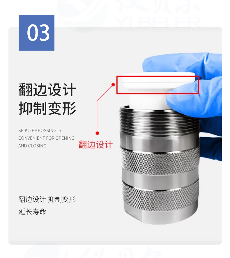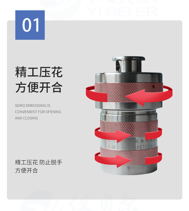 计,手动螺旋紧固(扳手机械紧固)密封性能好;杯顶有泄气孔,安全系数高即使在温度失